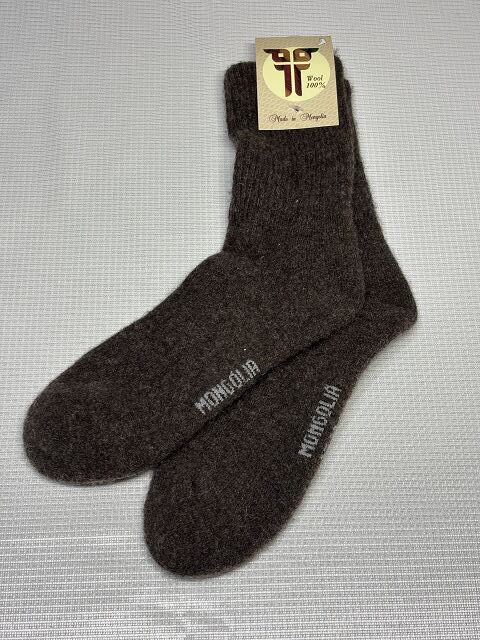 【防寒・あたたかい】 ウール100%靴下 ダークブラウン 無地 モンゴル国製