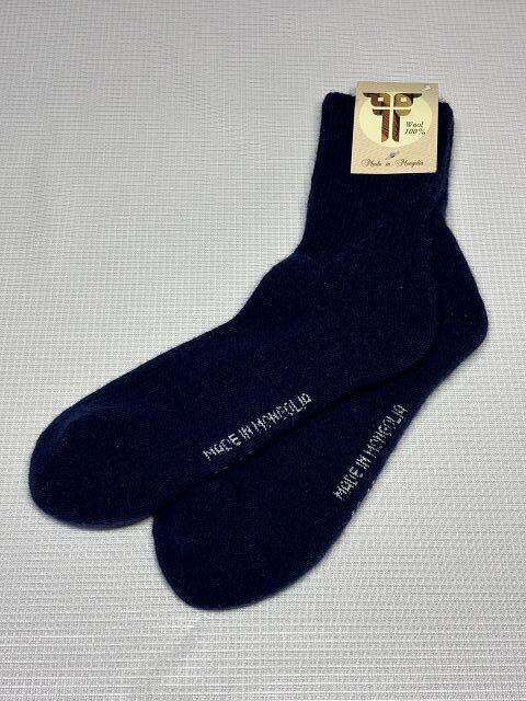 【防寒・あたたかい】 ウール100%靴下 ネイビー 無地 モンゴル国製