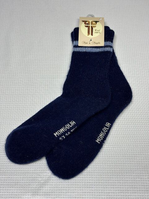 【防寒・あたたかい】 ウール100%靴下 ネイビー ストライプ モンゴル国製