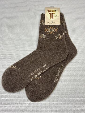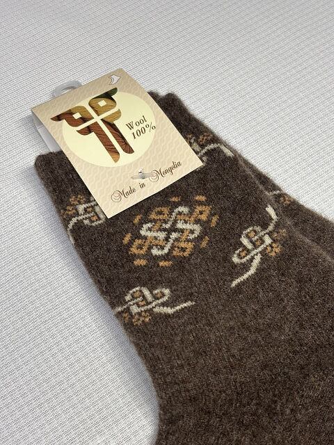 【防寒・あたたかい】 ウール100%靴下 ダークブラウン 吉祥文柄 モンゴル国製