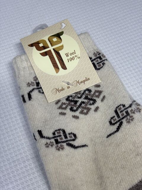 【防寒・あたたかい】 ウール100%靴下 ホワイト 吉祥文柄 モンゴル国製